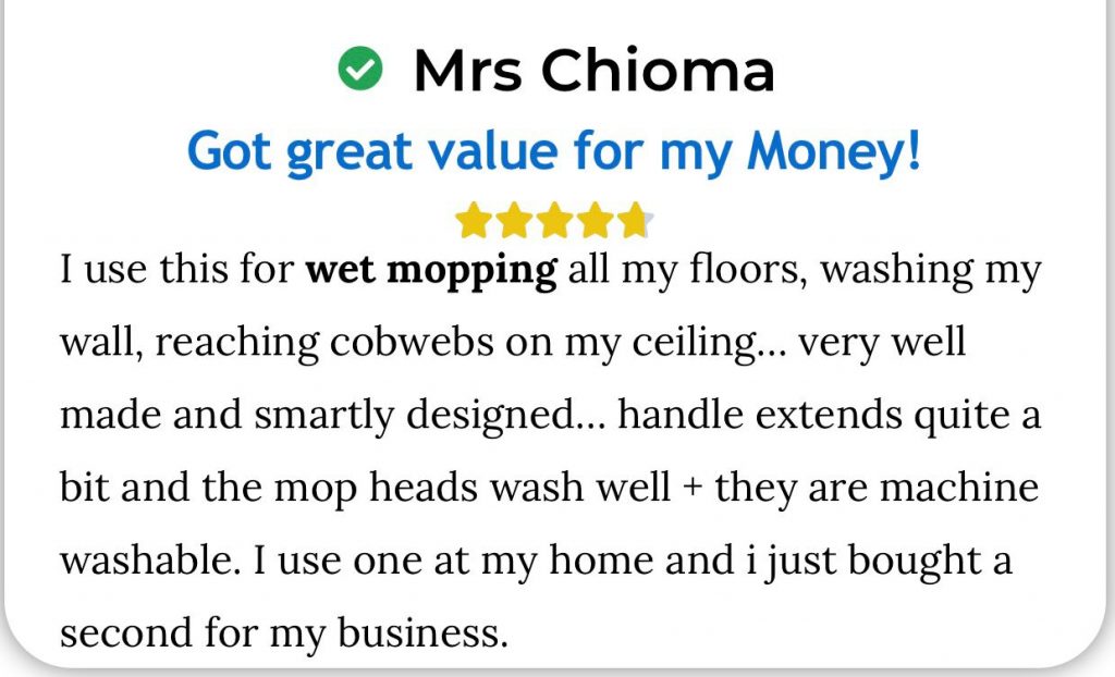 Unable to clean our wall tiles and ceilings due to short mop handle.
