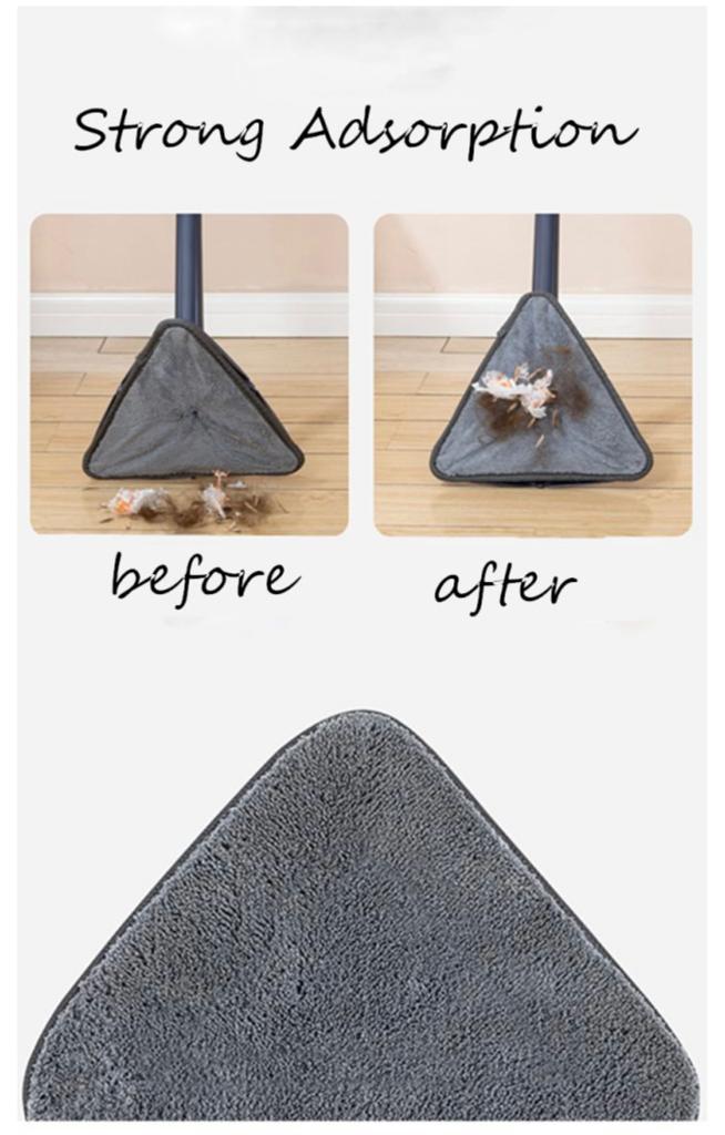 The mop is equipped with a highly absorbent cloth that absorbs water within seconds and firmly lock in dusts and dirts.